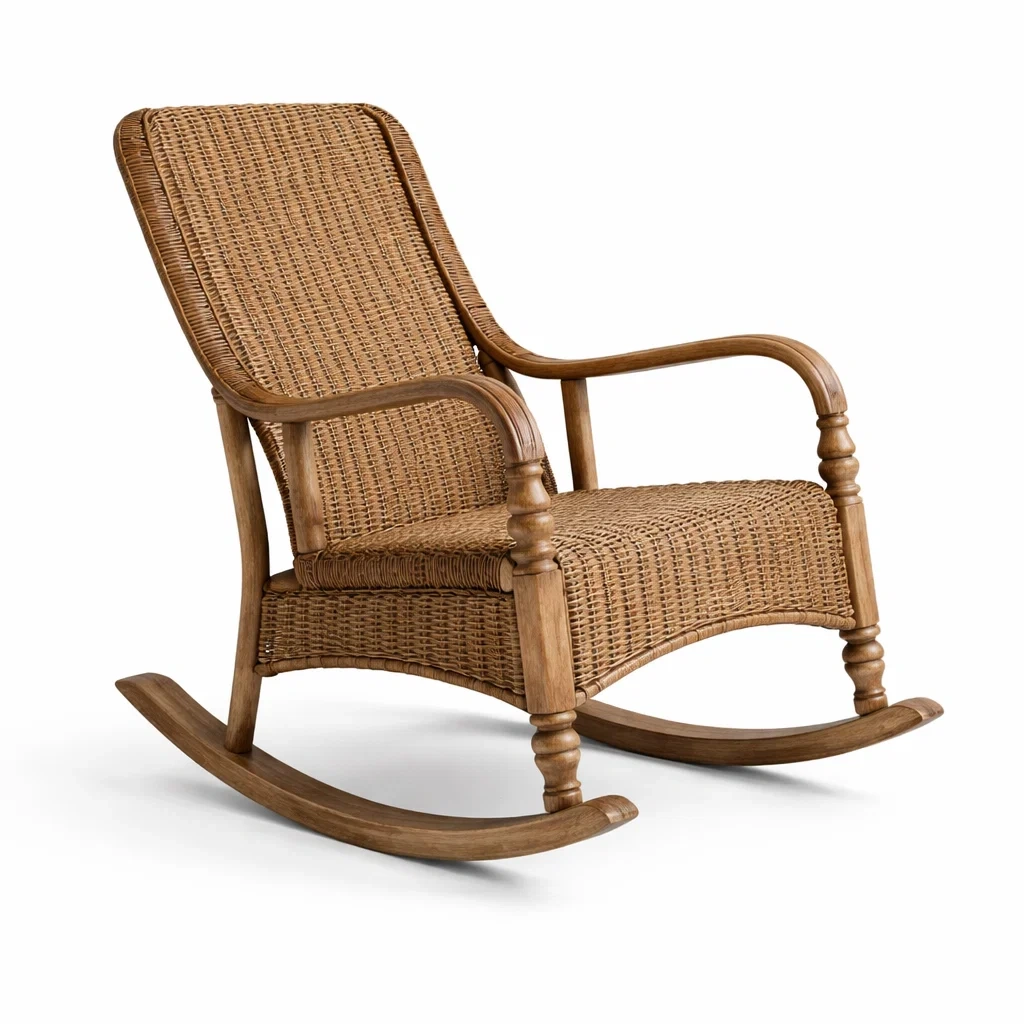 Fauteuil à bascule en bois et rotin marron
