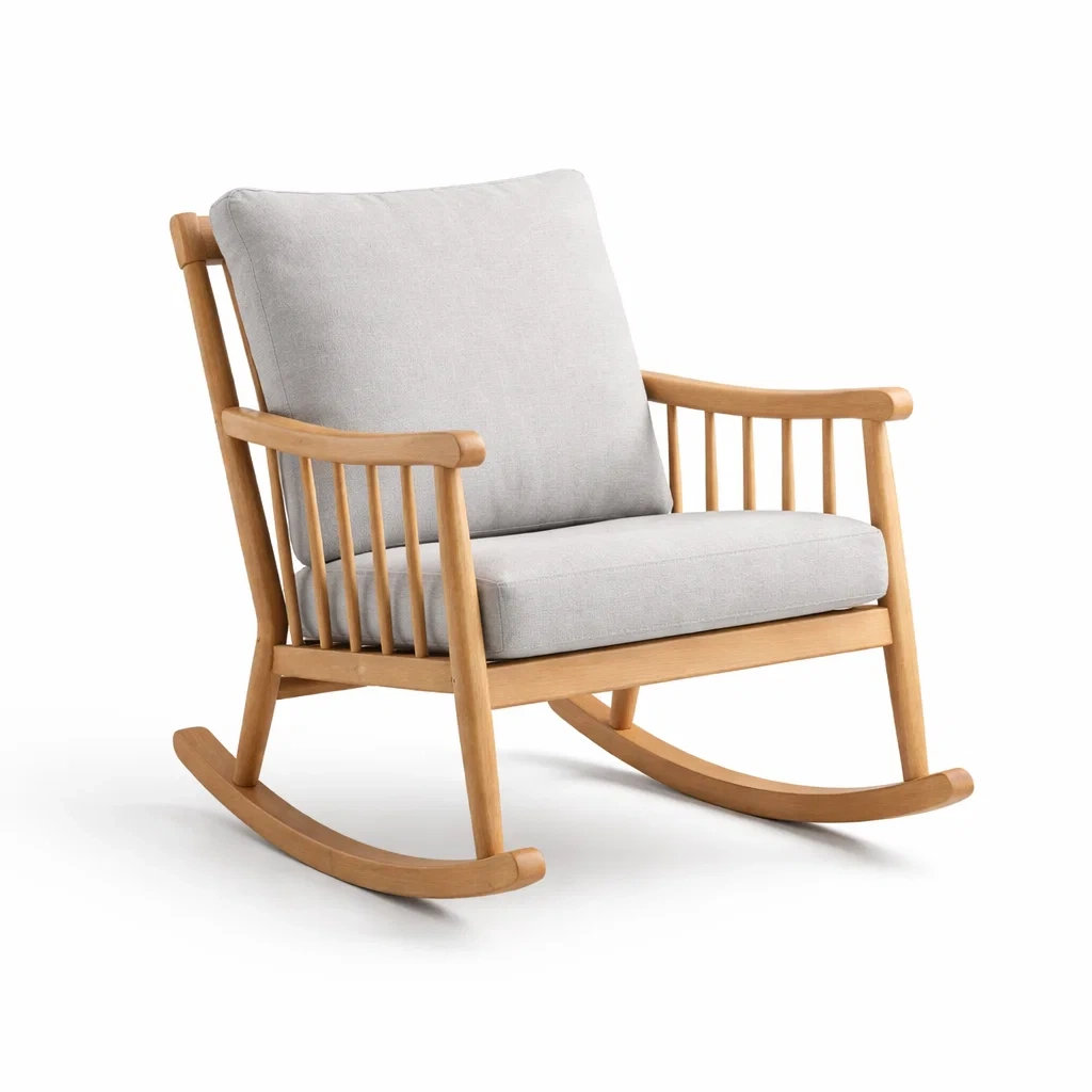 Fauteuil à bascule en bois avec tissu beige