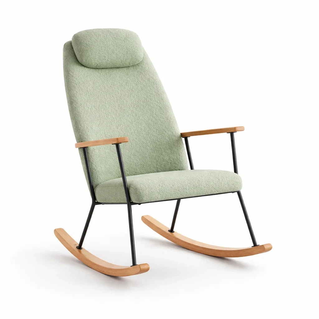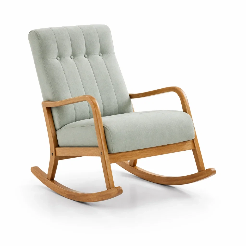 Fauteuil à bascule en bois et tissu polyester vert