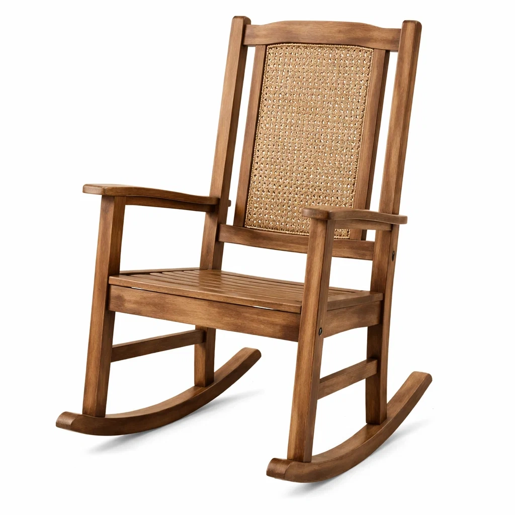 Fauteuil à bascule en bois avec dossier en rotin