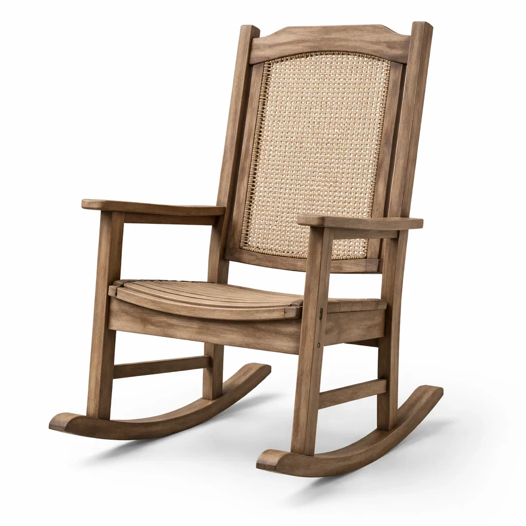 Fauteuil à bascule en bois avec dossier en rotin